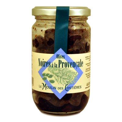 Ingrédients : olives noires, herbes de Provence, huile d'olive.