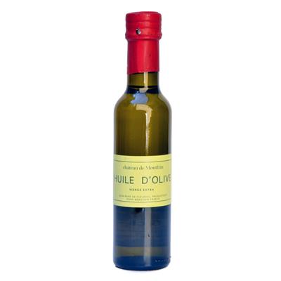 La bouteille de 25cl. Huile decatégorie supérieure obtenue directement des olives et uniquement pardes procédés mécaniques. Producteur : Château Montfrin, produit deFrance.