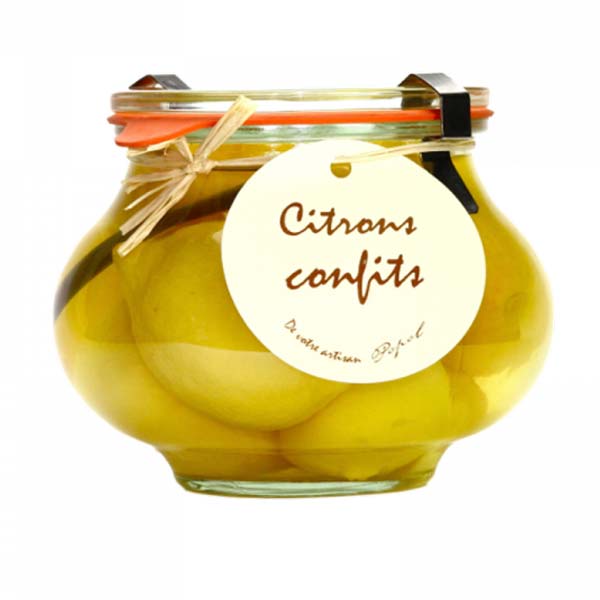 Les citrons confits sont des éléments essentiels à la préparation des tajines. Comment utiliser les citrons confits ? Ôtez la chair et la peau blanche pour ne conserver que l'écorce découpez-la en lamelle.Vous pouvez utiliser les citrons confits avec les rôtis de viandes blanches, les volailles et découpés en très fines lamelles pour réveiller vos salades.  Producteur : Popol, produit de France. Citrons confits. Le pot de 420 gr.   Ingrédients : citrons, sel, eau.