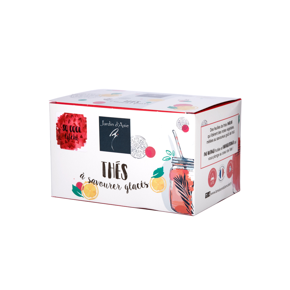 Découvrez notre délicieux thé glacé parfumé au litchi! Ce thé glacé s'infuse dans 20 à 25cl d'eau glacée. Conditionné en boite de 15 sachets individuels.